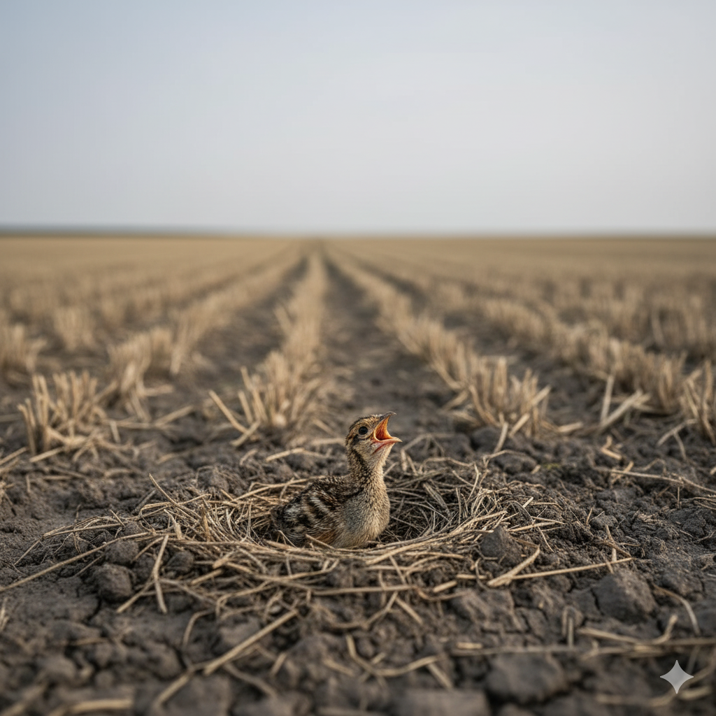 Der stumme Himmel über unseren Feldern ist die direkte Konsequenz der stillen Luft. Die Bestände der typischen Vogelarten der Agrarlandschaft, der sogenannten Feldvögel, sind in den letzten Jahrzehnten kollabiert. Seit 1980 hat Deutschland rund 12,7 Millionen Brutpaare an Feldvögeln verloren. Für Arten wie den Kiebitz oder das Rebhuhn verzeichnen Ornithologen in Deutschland und Europa katastrophale Rückgänge: Seit den 1980er Jahren sind die Bestände des Rebhuhns um 94 % und die des Kiebitzes um 93 % eingebrochen. Selbst die einst allgegenwärtige Feldlerche hat mehr als die Hälfte ihres Bestandes verloren. Diese Vögel verschwinden nicht, weil ihre Nester von Füchsen geplündert werden oder weil sie zu wenige Brutplätze finden. Sie verschwinden, weil sie und vor allem ihr Nachwuchs verhungern.