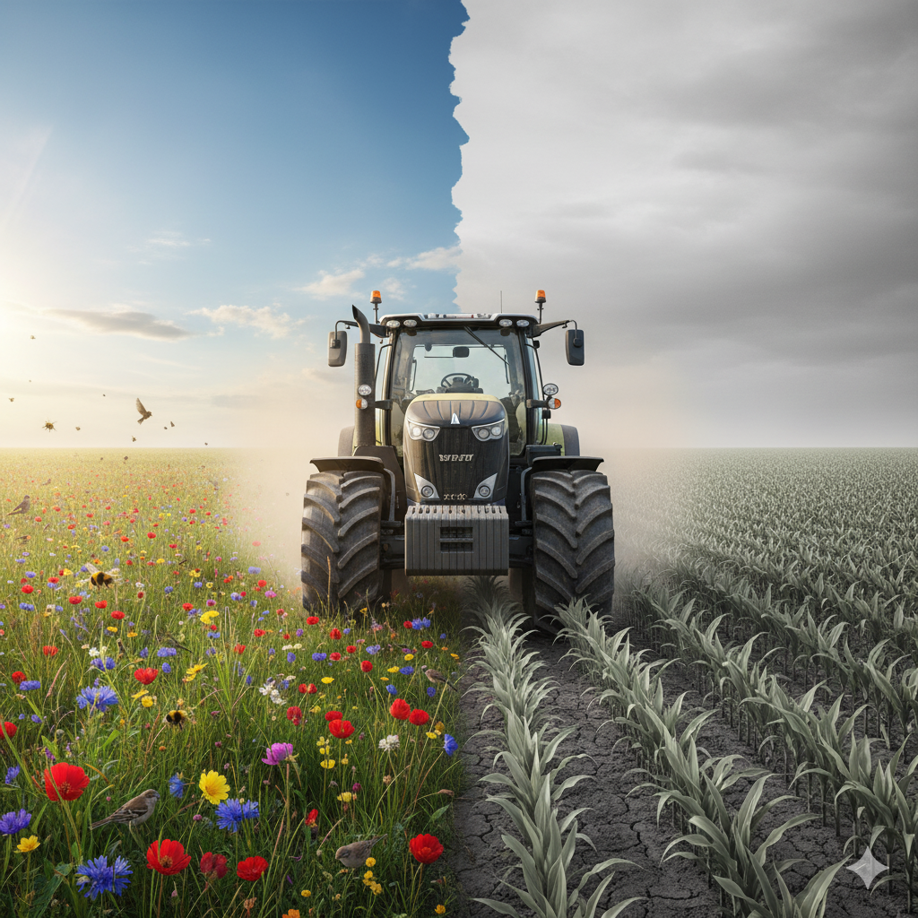 Zweitens, der chemische Einfluss: Die vielleicht direkteste Form des Angriffs ist der Einsatz von Pestiziden, auch „Pflanzenschutzmittel“ genannt – ein Euphemismus für Breitbandbiozide, die das Leben in seiner Vielfalt angreifen. Ihre Wirkung ist unselektiv und entfaltet sich in einer verheerenden Kaskade. Ein Insektizid unterscheidet nicht zwischen Schädling und Nützling ; ein Herbizid vernichtet nicht nur das “Unkraut”, sondern auch die Lebensgrundlage für hunderte Insektenarten. Die Folgen sind in der gesamten Biosphäre sichtbar:
