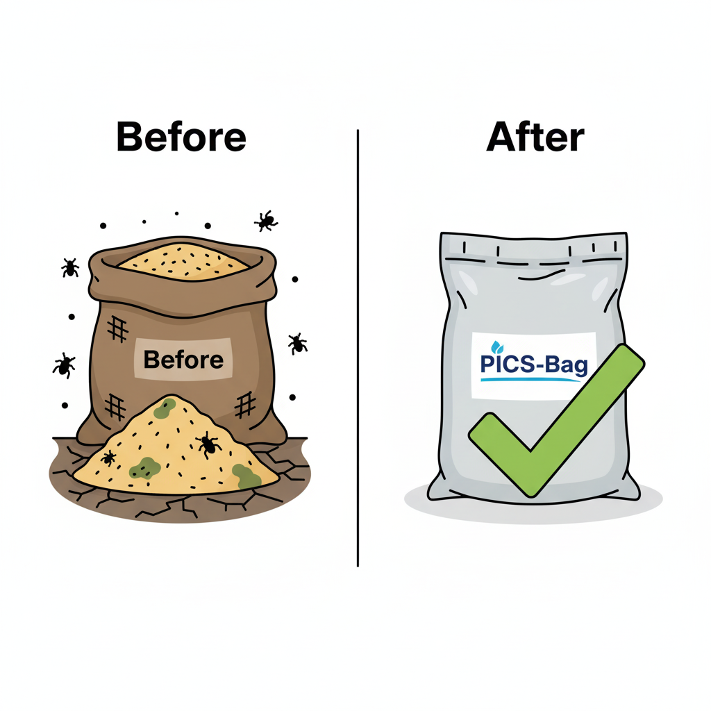 • Erfolg: Hermetische Lagerung. Ein “What.works”-Beispiel par excellence sind sogenannte PICS-Bags (Purdue Improved Crop Storage). Das sind einfache, luftdichte Plastiksäcke mit drei Lagen. In ihnen sterben Insekten mangels Sauerstoff ab, und Getreide bleibt monatelang frisch. Ein Sack kostet wenige Dollar, rettet aber hunderte Kilo Getreide. Unsere Rolle ist es, die Produktion und Verteilung solcher Technologien durch Mikro-Kredite und Wissenstransfer zu finanzieren.