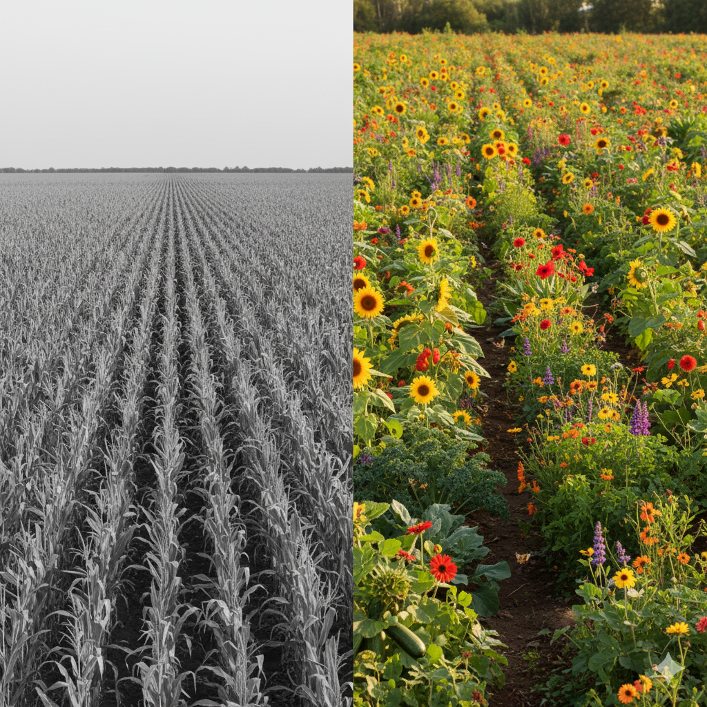 Ein entscheidender, oft übersehener Aspekt dabei: Dieses Modell erzwingt Vielfalt. Da die Mitglieder eine vielfältige Ernte für ihre Grundversorgung wünschen, kann der Hof nicht – wie im Massenmarkt üblich – auf einige wenige profitable Kulturen setzen. Er muss eine breite Palette anbauen. Diese erzwungene Vielfalt auf dem Acker (Mischkulturen, Fruchtfolgen) ist das genaue Gegenteil jener fatalen Monokulturen der intensiven Landwirtschaft, die zur Totalzerstörung von Biosphäre und Gesundheit führen, und damit ökologisch das Beste, was man für Bodengesundheit und Biodiversität und Nachhaltigkeit tun kann.