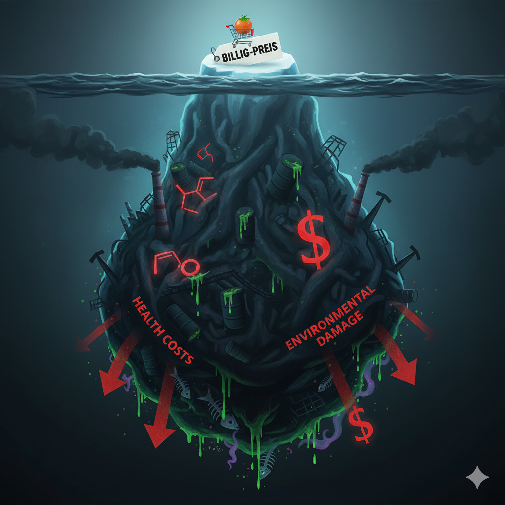 Aber Vorsicht. Diese Vorteile dürfen niemals als “Greenwashing” für ein ansonsten zerstörerisches System dienen. Wenn ein Apfel aus der Region stammt, aber aus einer konventionellen Monokultur voller Pestizide kommt, die das Grundwasser belastet und Insekten tötet, ist er nach wie vor fatal für Umwelt und Gesundheit. Nur weil etwas gerade Saison hat, kann es immer noch “best of böse” sein – angebaut mit massivem Kunstdünger-Einsatz auf einem ausgelaugten Boden.