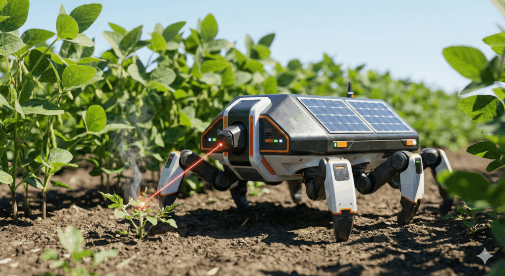 Aber die Zukunft hält noch präzisere Werkzeuge bereit. Autonome Laser-Roboter werden bald die neuen Wächter unserer Felder sein. Schwärme von kleinen, solargetriebenen Einheiten, die Tag und Nacht lautlos über den Acker krabbeln. Sie brauchen keine Chemie. Wenn sie ein Unkraut erkennen, wird es durch einen hochenergetischen Laserblitz verkocht – “weggezappt”. Kein Gift im Grundwasser, keine resistenten Super-Unkräuter, kein verdichteter Boden durch schwere Maschinen.