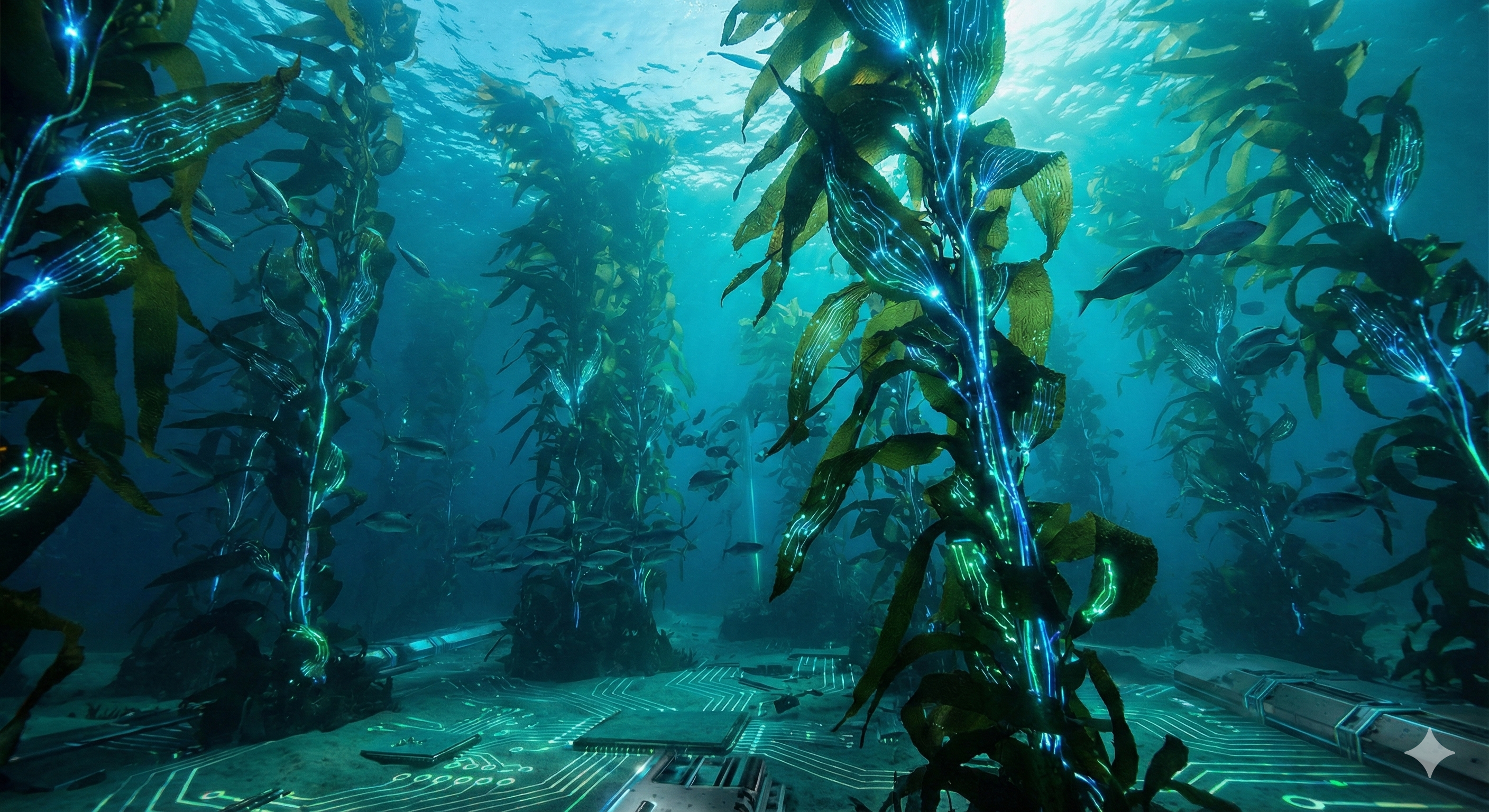 Algen sind die effizientesten Pflanzen der Welt. Manche Kelp-Arten (Riesentang) wachsen bis zu 50 Zentimeter – pro Tag. Sie bilden unter Wasser riesige Wälder, die CO2 binden, und zwar oft effizienter als der Amazonas-Regenwald.