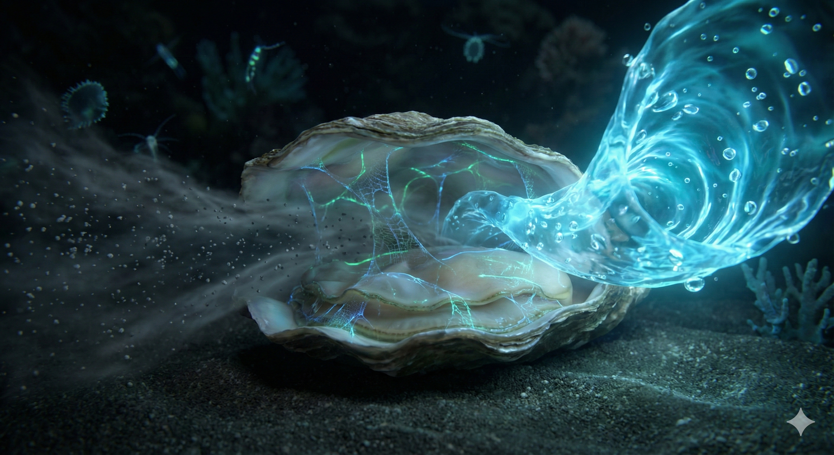Im Gegensatz zu Rindern oder Schweinen, die wir füttern müssen, sind Muscheln sogenannte Filtrierer. Sie fressen Plankton. Eine einzige Auster filtert bis zu 200 Liter Wasser pro Tag. Sie reinigt das Meer von Schwebstoffen und überschüssigem Stickstoff. Das bedeutet: Eine Muschelfarm liefert nicht nur Nahrung, sie hinterlässt das Ökosystem sauberer, als sie es vorgefunden hat.
