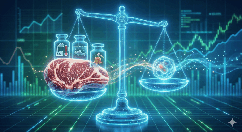 - Die Post-Animale Industrie (Präzisionsfermentation): Wenn wir Fleisch und Milch in Fermentern brauen, beenden wir die ineffiziente Veredelung durch das Tier. Wir brauchen keine Soja-Monokulturen mehr für Rinder.