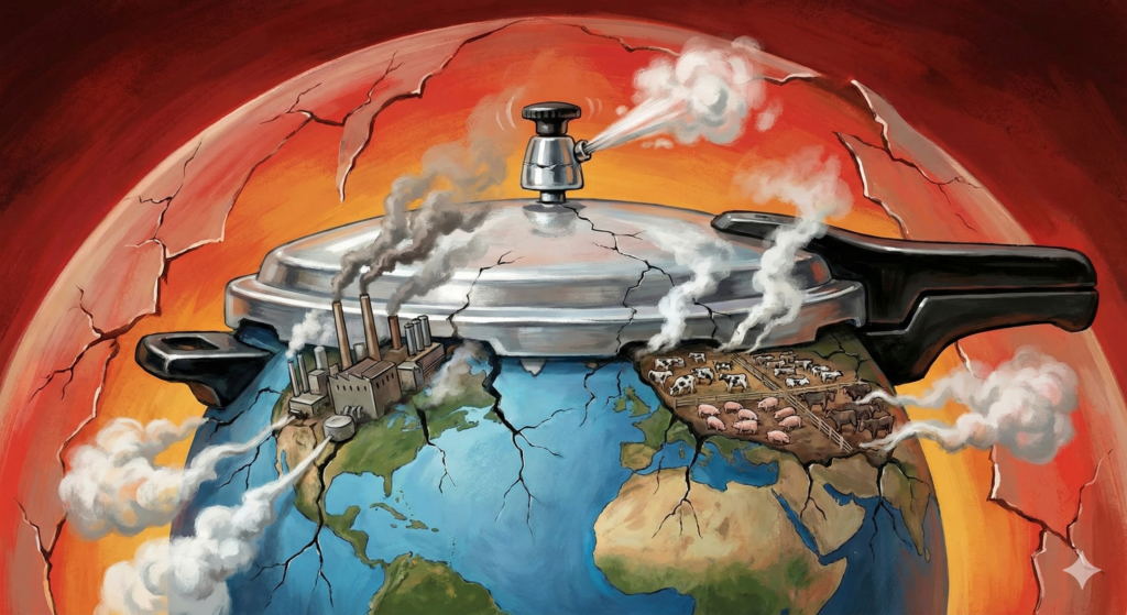 Im letzten Artikel standen wir gemeinsam auf einem virtuellen Fußballfeld – jenen 2.000 m² Ackerland, die jedem Menschen rechnerisch zustehen. Wir haben gesehen, wie das aktuelle Ernährungssystem nicht nur unermessliches Tierleid in Tierfabriken und unter freiem Himmel produziert, sondern gleichzeitig die planetaren Grenzen sprengt.