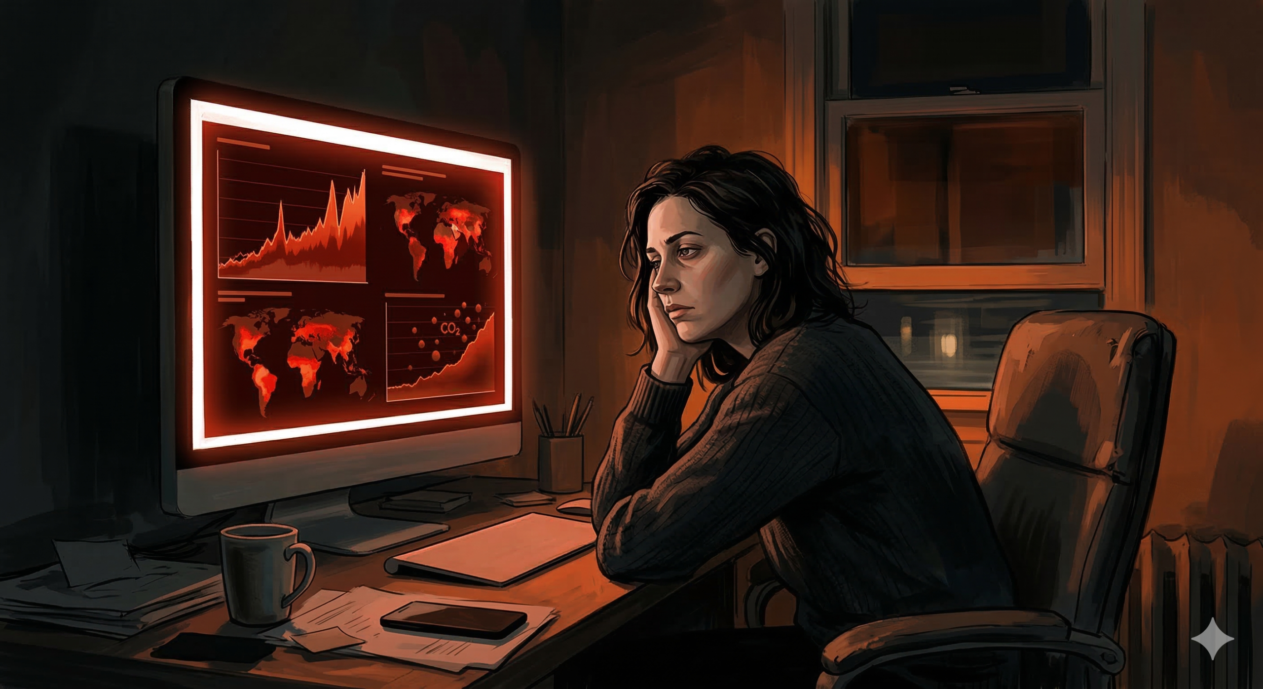 • Gesellschaftliche Trägheit: Trotzdem steigen die globalen Emissionen weiterhin auf Rekordwerte, während – oder weil – das Bewusstsein in der Bevölkerung abnimmt und einer gewissen „Klimamüdigkeit“ weicht.
