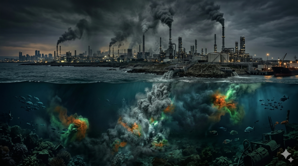 Die Ozeanversauerung ist der unsichtbare Zwilling des Klimawandels. Dieselbe Ursache — unsere CO₂-Emissionen —, zwei Schauplätze der Zerstörung: Atmosphäre und Ozean.
