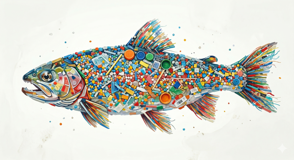 Zwischen 75 und 199 Millionen Tonnen Plastik befinden sich derzeit in den Ozeanen. Das eigentliche Problem ist nicht die Plastikflasche — es ist das, was daraus wird. Im Meer zerfällt Plastik zu Mikropartikeln, kleiner als ein Millimeter, die von Plankton, Fischen und Muscheln gefressen werden und sich in der Nahrungskette anreichern. Mikroplastik wurde bereits im menschlichen Blut nachgewiesen, in der Plazenta, im Gehirn. Das Meer gibt uns zurück, was wir hineingeworfen haben — nur konzentrierter.